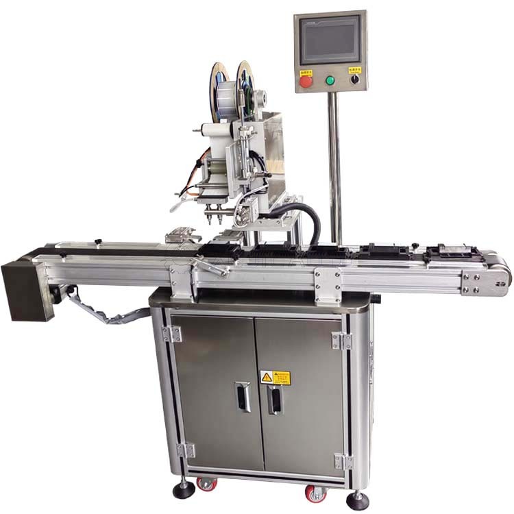 This automatic positioning flat surface labeling machine is designed for high-efficiency and high-precision top labeling on various flat products, including boxes, cartons, plastic bags, lids, electronic components, and cards. The built-in positioning system ensures accurate label placement, making it ideal for products requiring consistent labeling quality.