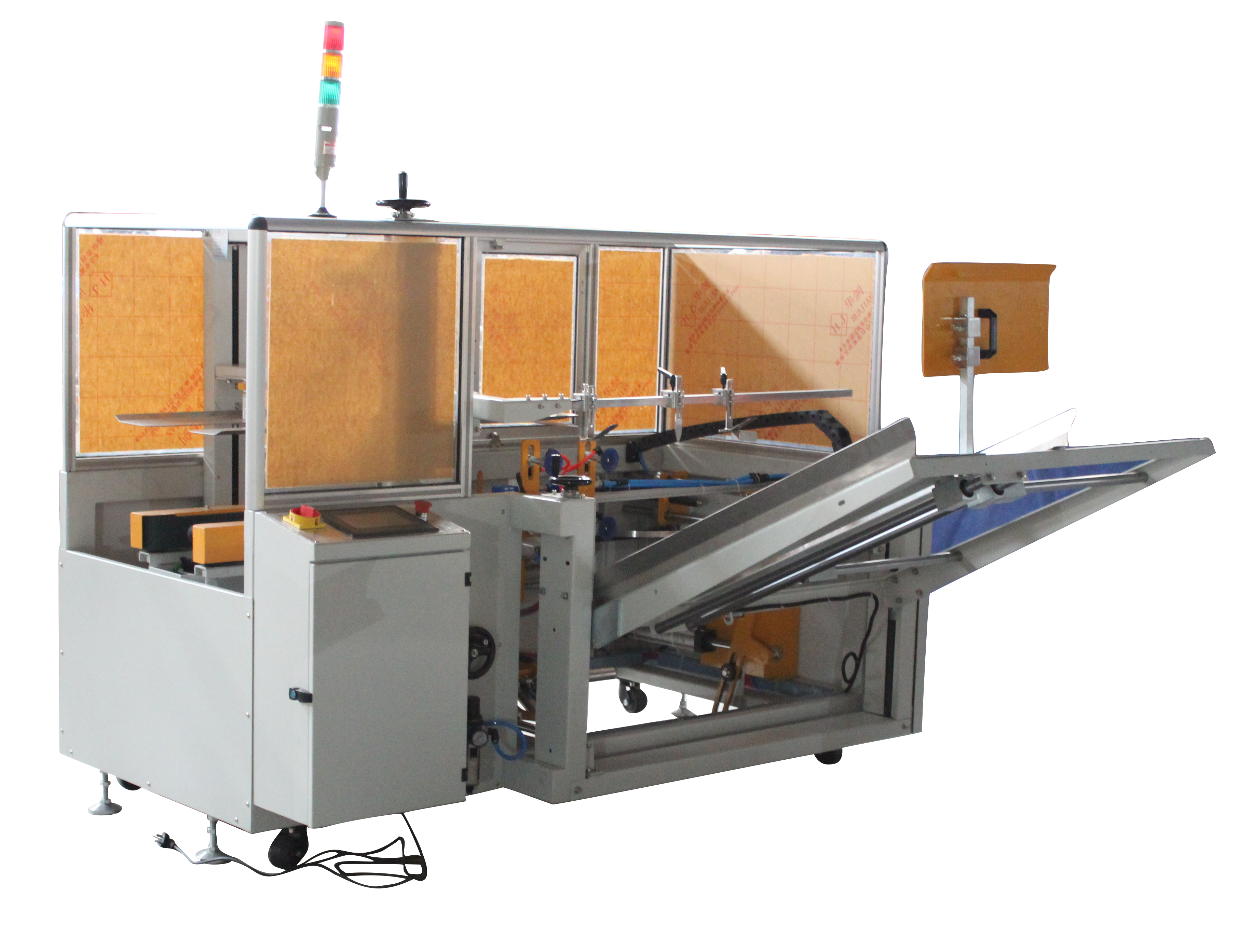 automatic carton erector can open carton, shape, fold and stick the adhesive tape automatically. Our case erector can automatically correct the right-angle. Automatic carton erector is widely used in automatic packing line, it can continue opening carton in mass quantity, fold the bottom and sealing automatically. Equipped PLC and touch screen control, convenient for operation and management, it helps save large manpower.