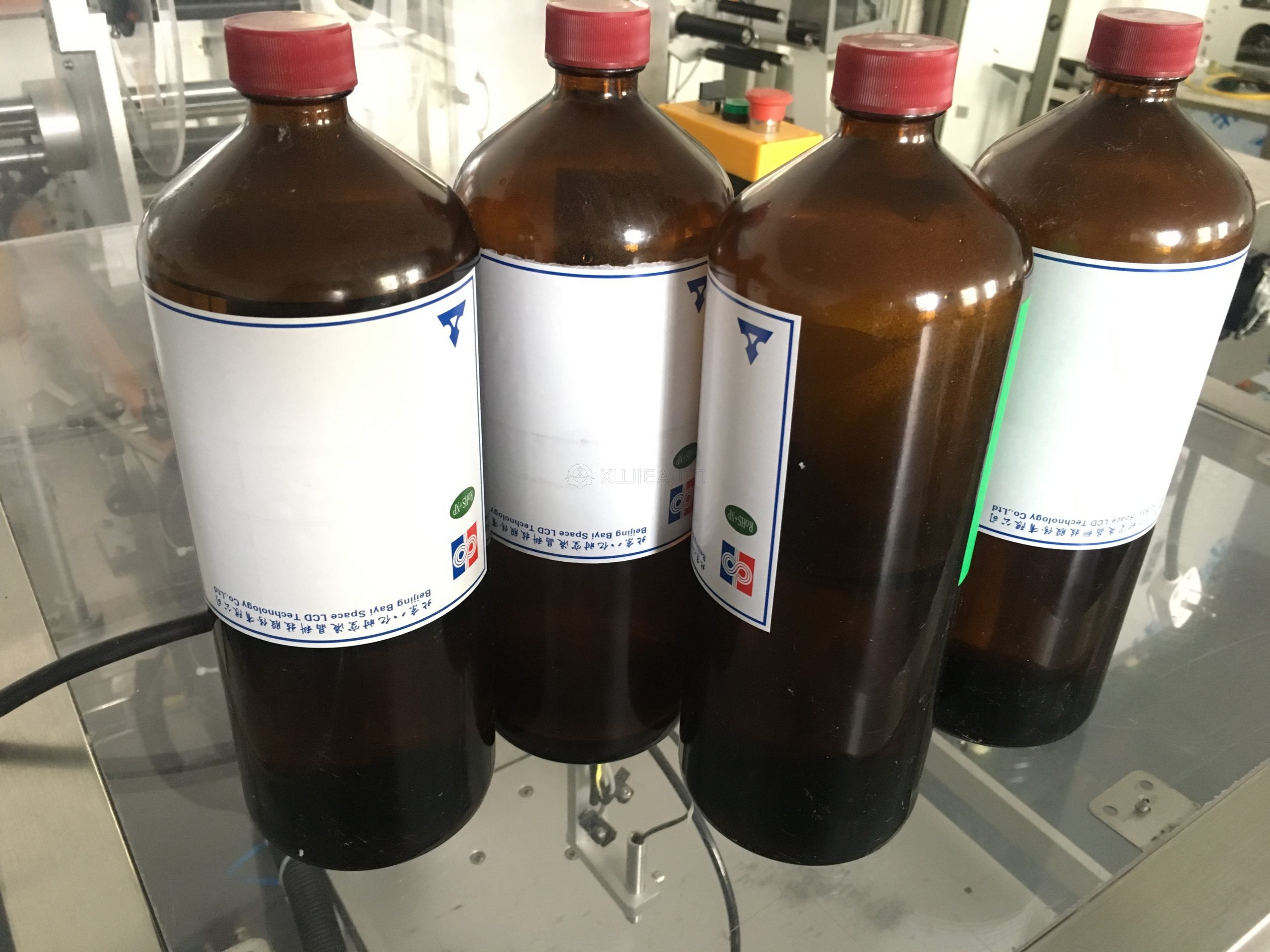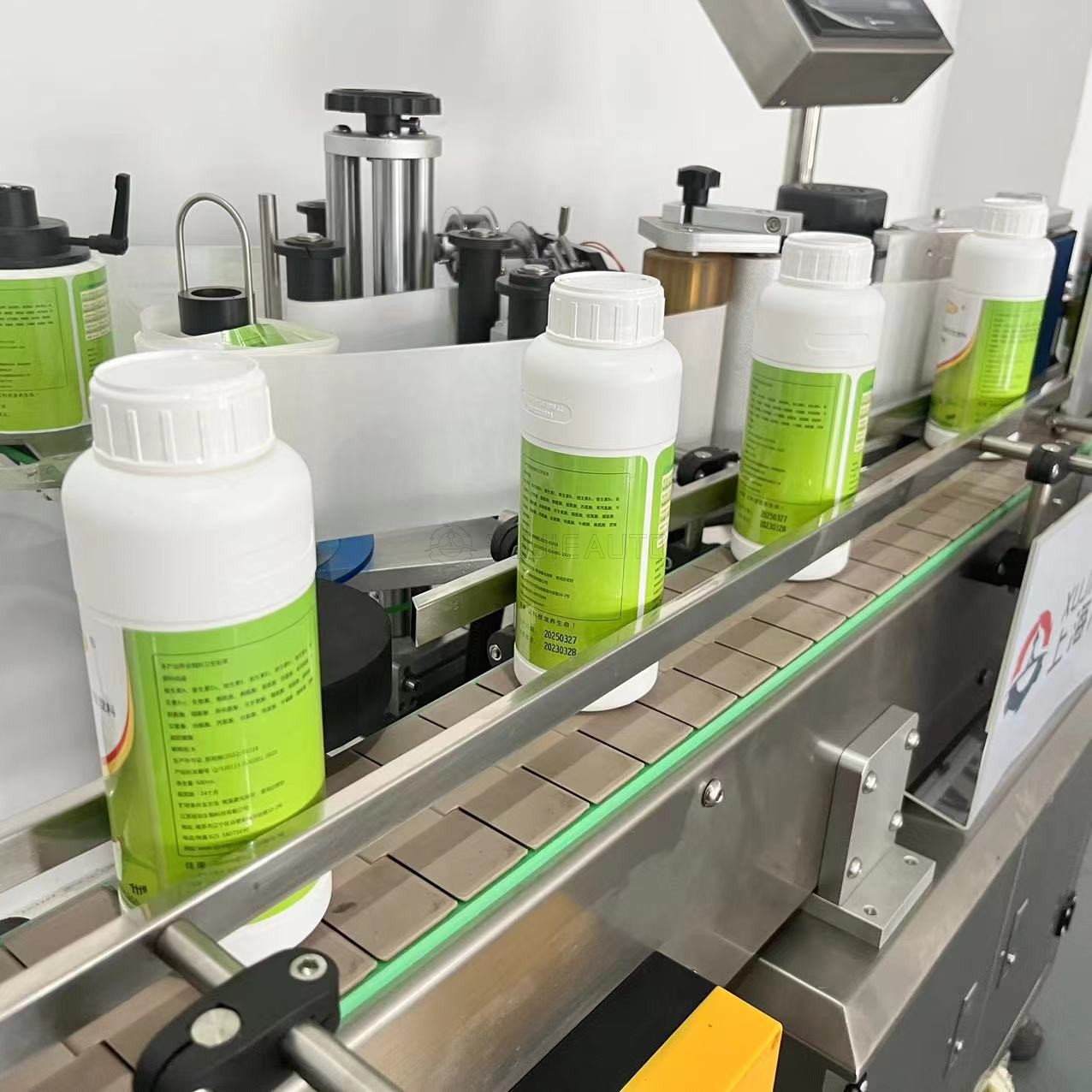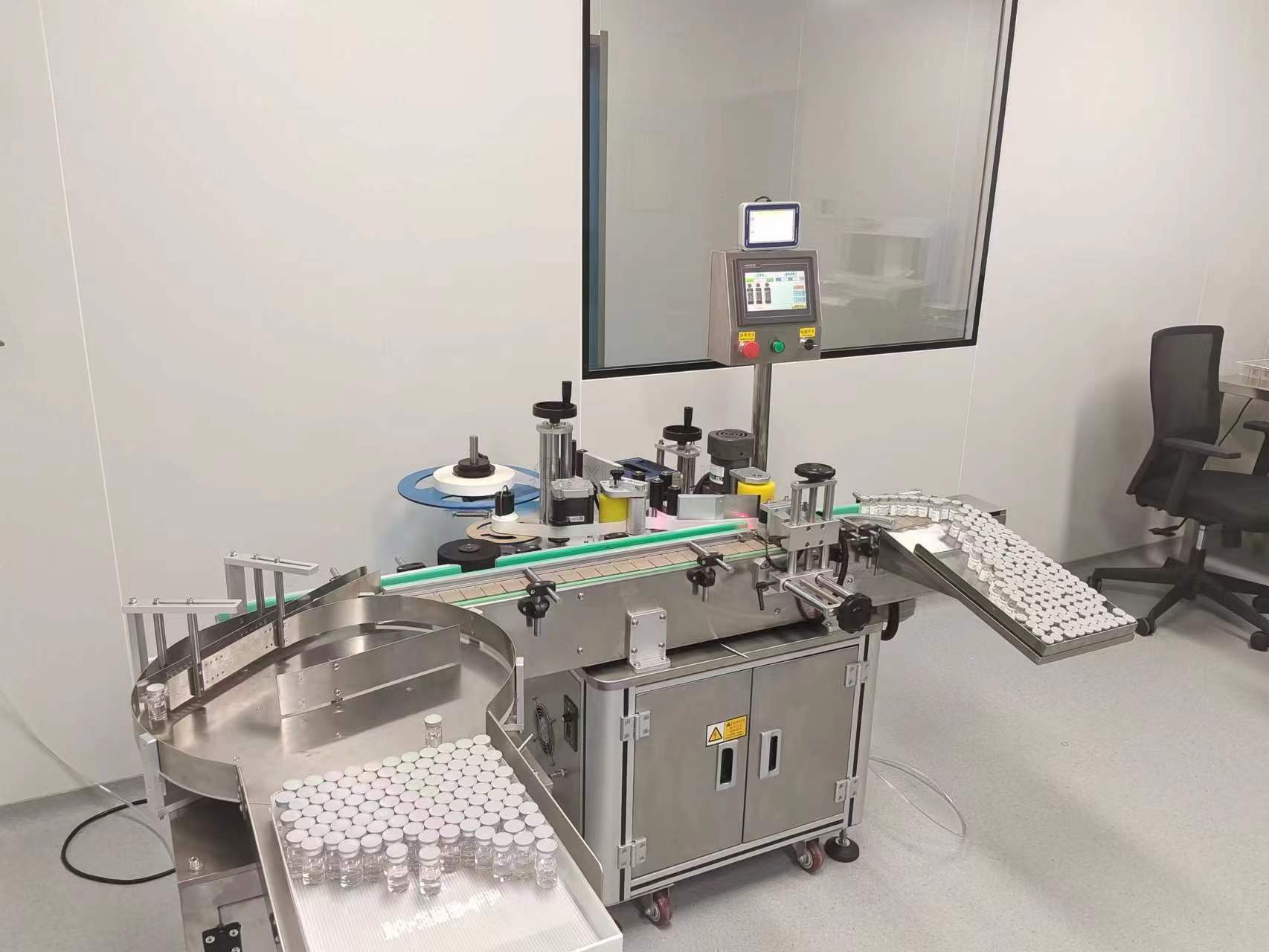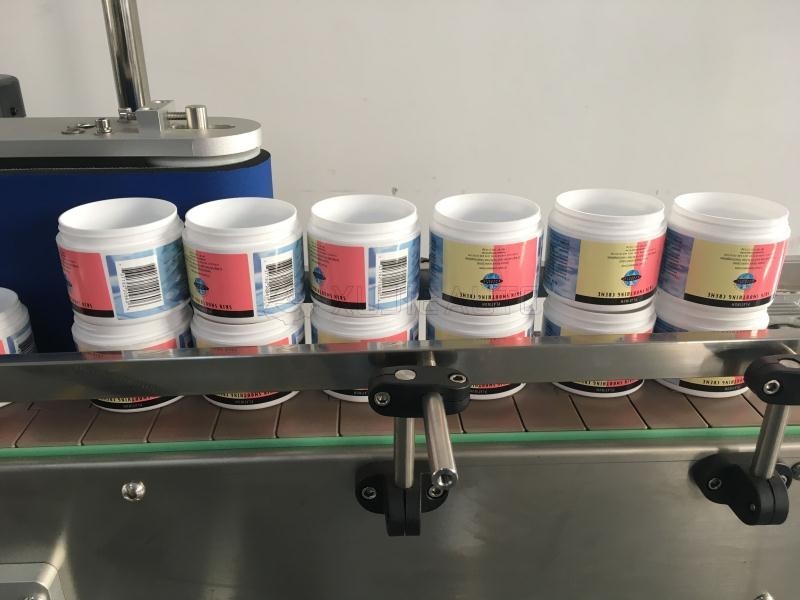 Fully automatic round bottle labeling machine + capping machine is a kind of machine equipment used to automatically attach labels and press caps on round bottles or containers. Working principle: The fully automatic round bottle labeling machine uses a variety of sensors and motor systems, which can detect the position and orientation of the bottle, and then apply the label to the correct position precisely. Typically, the machine removes the label from the reel and then applies it to the bottle after a series of guide and conveyor systems. The conveyor belt then continues to transport the bottles to the back, where sensors detect the position and press the lid tightly. These machines can usually cope with bottles of different sizes and shapes.