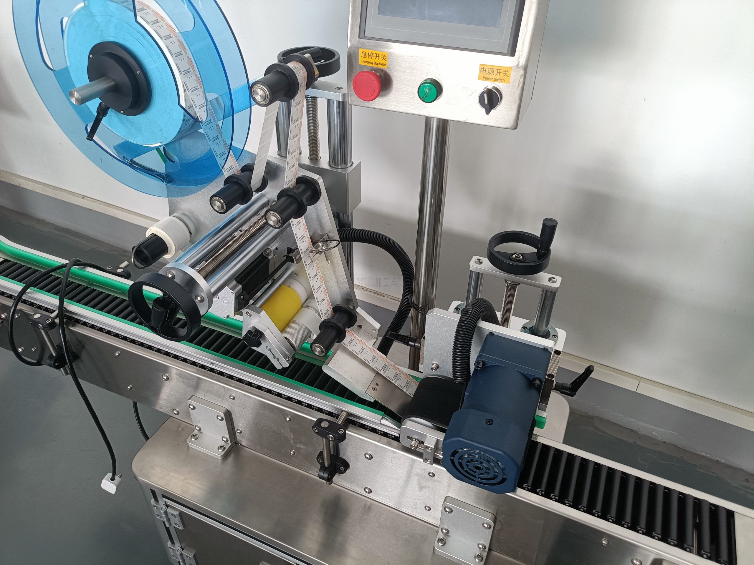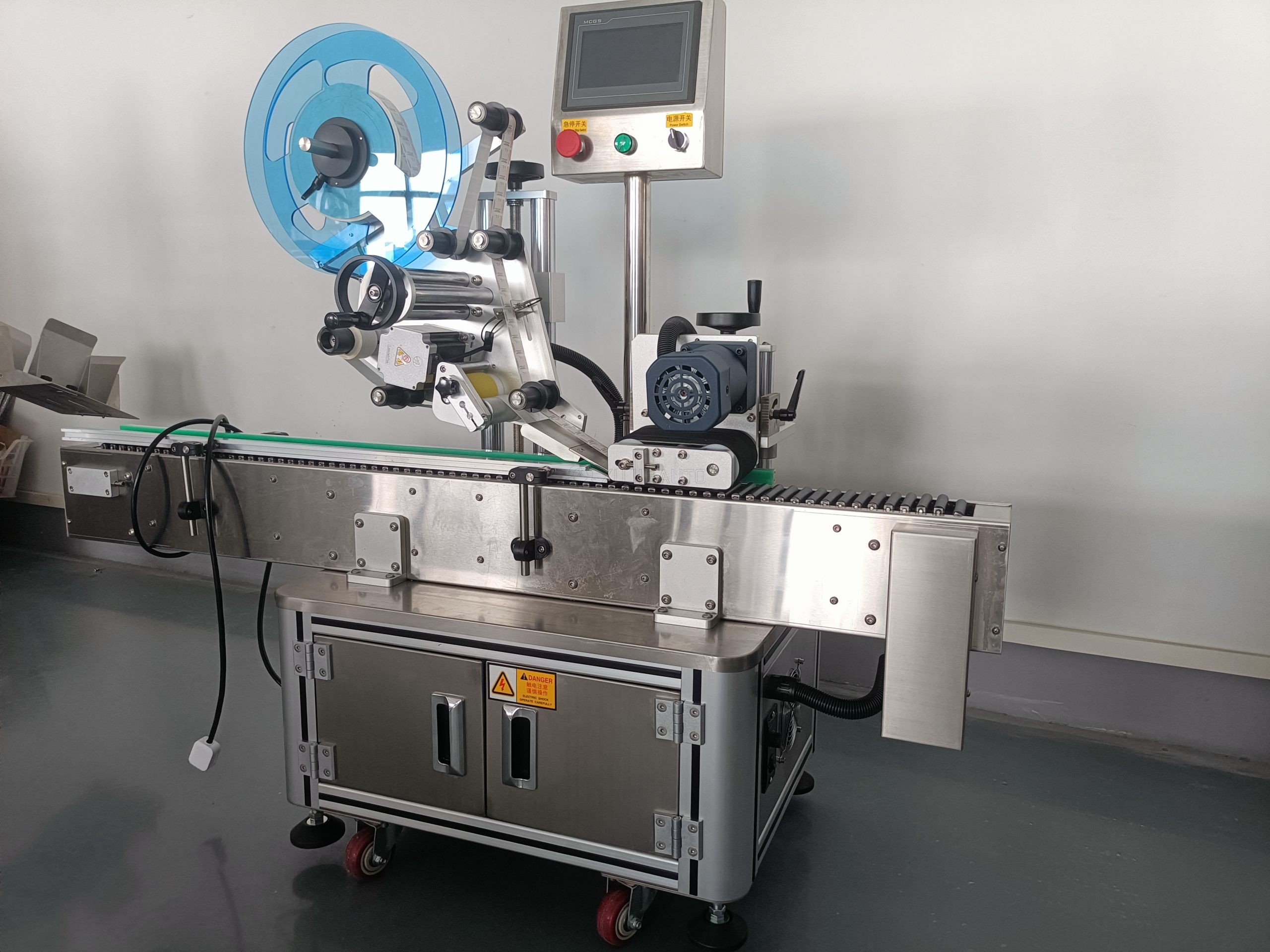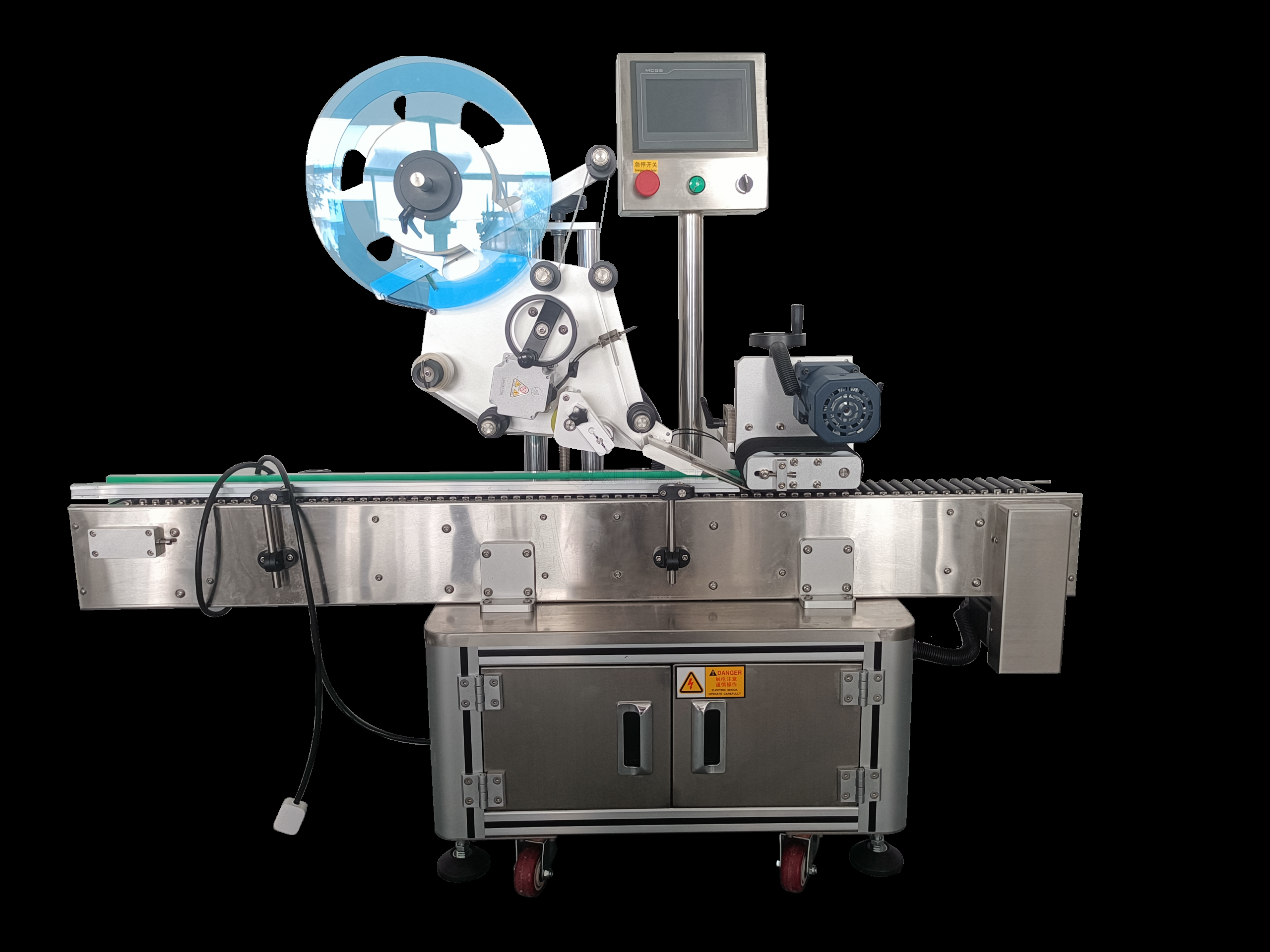 Featuring a horizontal conveyor with a rotating roller positioning system, it ensures the product is held and rotated stably during labeling, enabling full or partial circumference labeling with ±1mm accuracy. The PLC-controlled touchscreen interface allows easy parameter adjustment and recipe storage, supporting high-speed operation up to 120 products per minute. Built with SUS304 stainless steel, the machine meets hygiene standards for pharmaceutical, food, and cosmetic industries, providing reliable, wrinkle-free labeling for a wide range of cylindrical items.