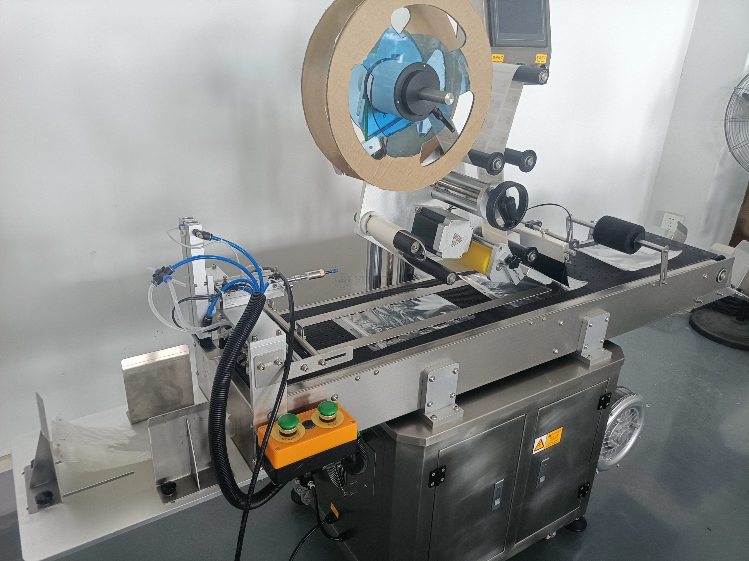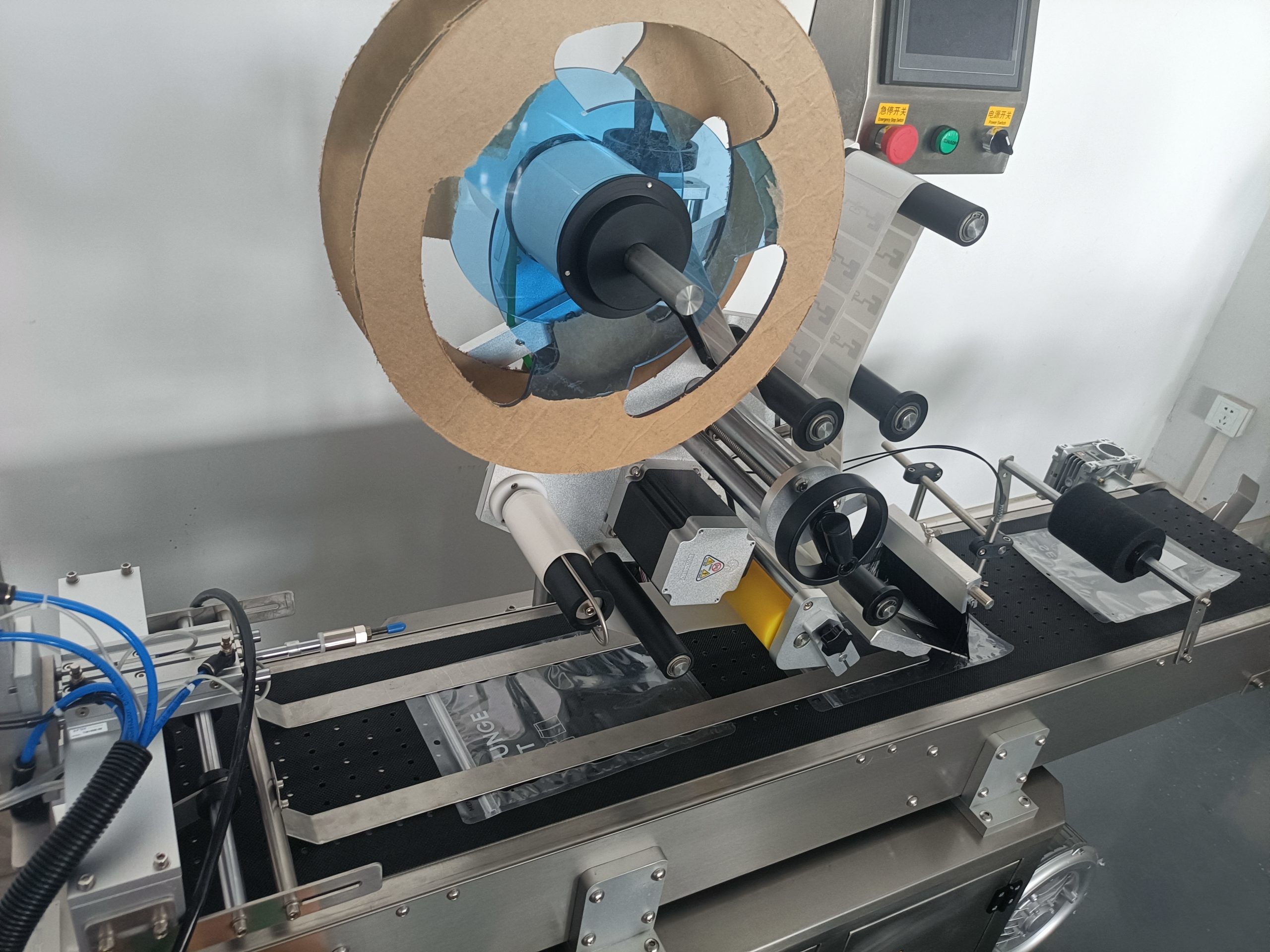 This full automatic pneumatic paging flat labeling machine is an industrial-grade labeling solution designed for flat, thin products such as cards, envelopes, pouches, plastic bags and cartons.